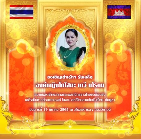 ขอเชิญเฝ้าฯ รับเสด็จองค์หญิงโกโสมะ เตวี นโรดม เสด็จเป็นการส่วนพระองค์ ในงาน สตรีไทยสัมพันธ์ไทย-กัมพูชา