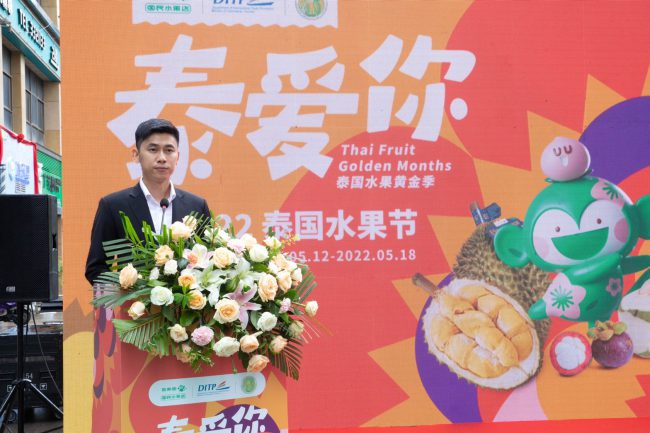ฝ่ายเกษตร ประจำสถานกงสุลใหญ่ ณ นครกว่างโจว ร่วมกับสำนักงานส่งเสริมการค้าในต่างประเทศ ณ เมืองหนานหนิง และบริษัท Shenzhen Pagoda Industrial Group จำกัด จัดงานเทศกาลผลไม้ไทย ประจำปี 2565 (Thai Fruit Festival 2022) ณ นครหนานหนิง ภายใต้ธีม “泰爱你” (ไทยรักคุณ) ระหว่างวันที่ 13 – 18 พฤษภาคม 2565 เพื่อประชาสัมพันธ์และส่งเสริมการตลาดผลไม้ไทยทั้งในแพลตฟอร์มออนไลน์และออฟไลน์