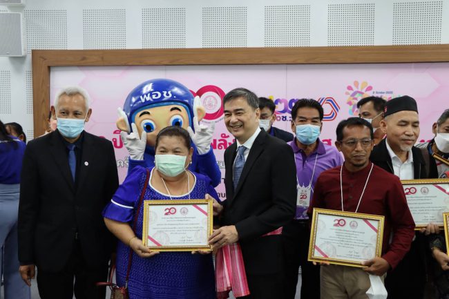 นายอภิสิทธิ์ เวชชาชีวะ อดีตนายกรัฐมนตรี กล่าวว่า ขอแสดงความยินดีการครบรอบ 20 ปีกระทรวง พม. และ 22 ปี พอช. ส่วนที่มาของ พอช.นั้น ในช่วงปี 2540 – 2544 ในสมัยนั้นประเทศไทยประสบวิกฤตต้มยำกุ้ง ถ้าเราย้อนกลับไปก็จะทราบว่าในหลวงรัชกาลที่ 9 มีพระราชดำรัสเรื่องเศรษฐกิจพอเพียง ในขณะที่คนไทยเดือดร้อนมาก