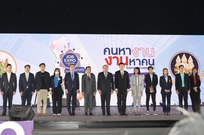 วันที่ 8 มิถุนายน 2566 เวลา 14.30 น. ณ บริเวณเวทีกลาง Hall EH 100 -102 ศูนย์นิทรรศการและการประชุมไบเทค บางนา กรุงเทพมหานครนายสุชาติ ชมกลิ่น รัฐมนตรีว่าการกระทรวงแรงงาน มอบหมาย นายสุรชัย ชัยตระกูลทอง ผู้ช่วยรัฐมนตรีประจำกระทรวงแรงงาน เป็นประธานในพิธีเปิดงาน JOB EXPO THAILAND 2023 โดยมีนายบุญชอบ สุทธมนัสวงษ์ ปลัดกระทรวงแรงงาน นายไพโรจน์ โชติกเสถียร อธิบดีกรมการจัดหางาน ผู้บริหารกระทรวงแรงงาน ร่วมพิธีเปิด ท่ามกลางผู้บริหารหน่วยงานภาครัฐ ภาคเอกชน และภาคีเครือข่ายที่ร่วมกันจัดงาน