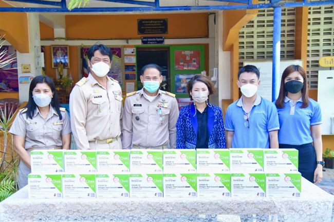 บลูเทค ซิตี้มอบชุดตรวจหาแอนติเจนของเชื้อโควิด -19 ให้แก่โรงเรียนวัดเขาดิน อ.บางปะกง จ.ฉะเช…